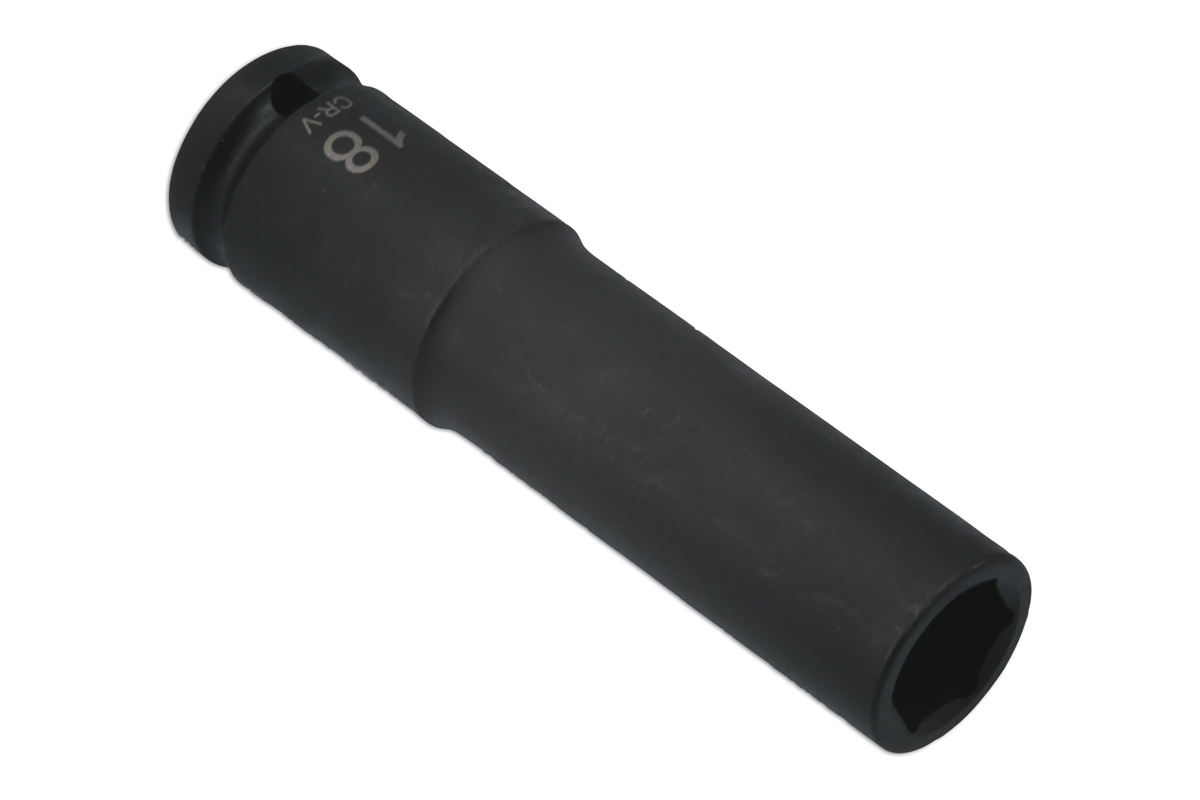 - Douille à impact extra-longue de 18 mm, conçue pour une utilisation avec des pistolets à impact pneumatiques/électriques ou des tournevis à impact.