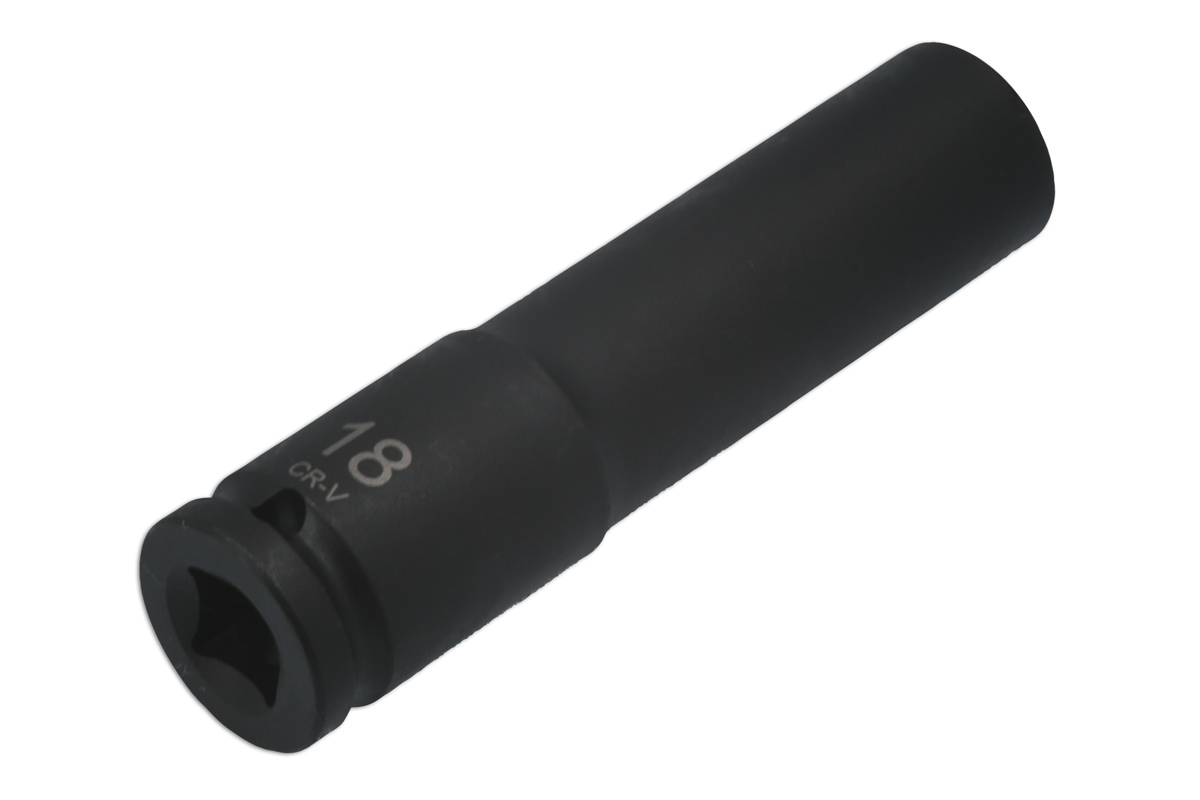 18mm extra deep impact socket, designed for use on air/electric impact guns or impact drivers. Part of a range of extra deep sockets from 10mm to 32mm.