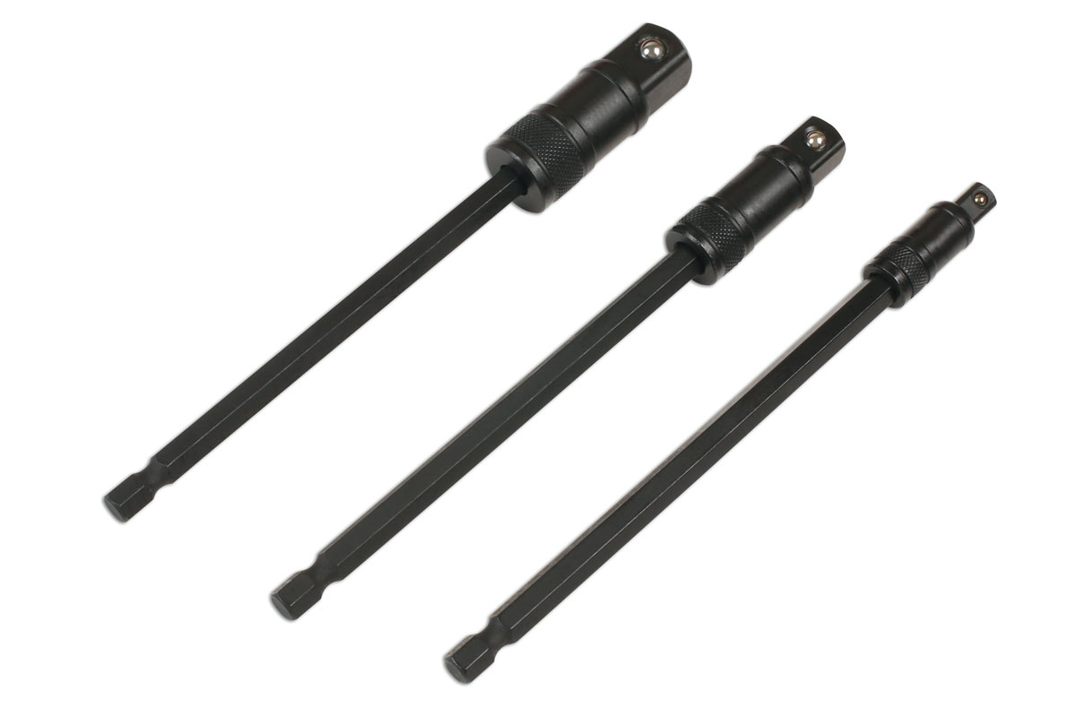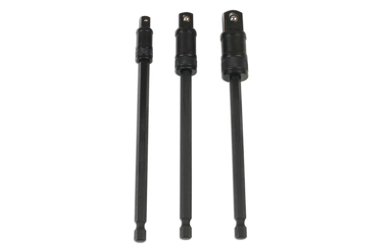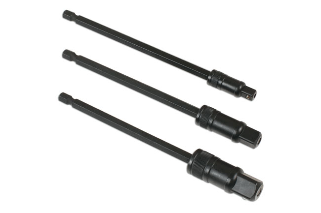 A 3 piece impact quick locking adaptor set with quick chuck connectors.