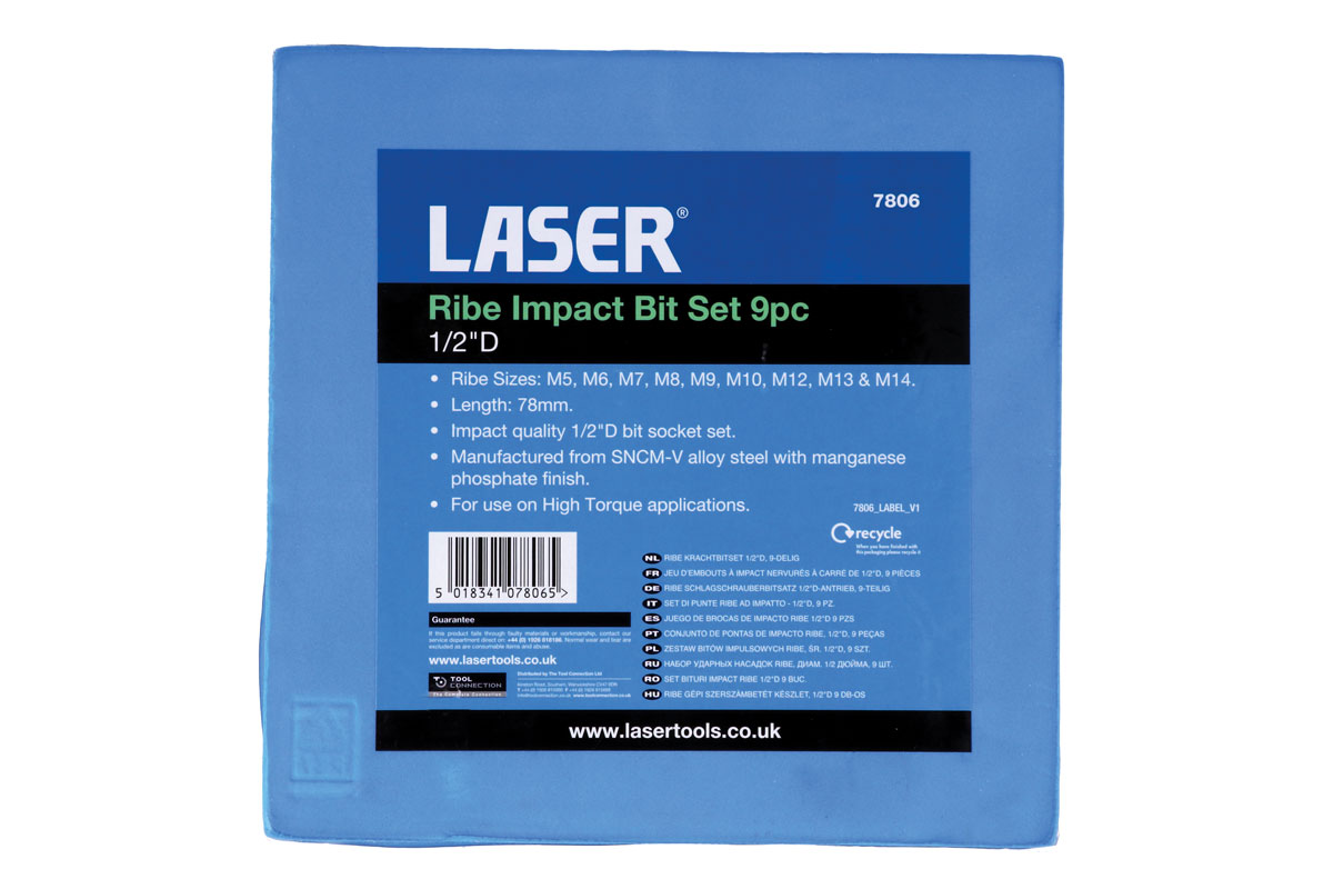 7806 Impact Ribe Socket Bit Set 1/2"D 9pc