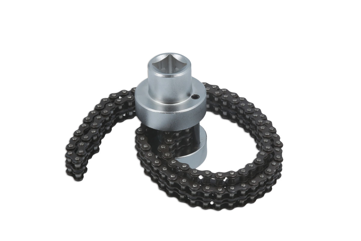 Ölfilterschlüssel mit 1/2"-Antrieb mit dünner Doppelkette, Durchmesserbereich 60-170 mm.