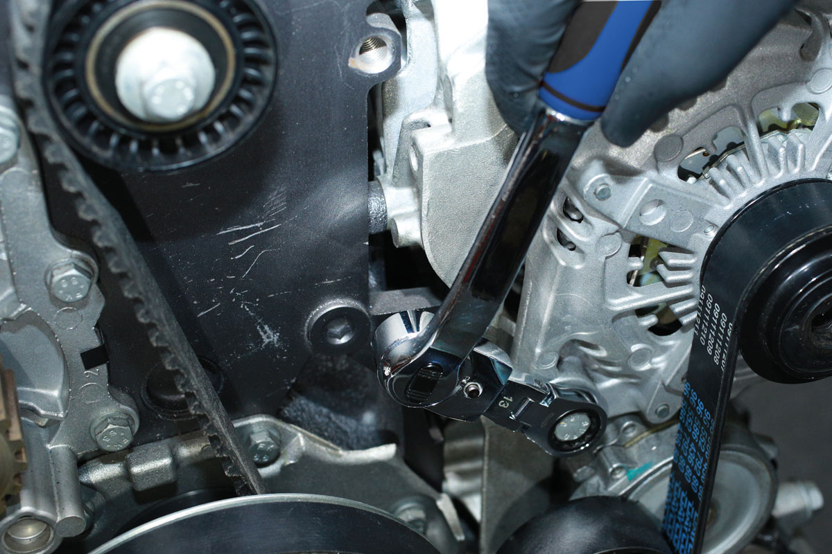 • Flexible 360° off-set ratchet handle with 5 interchangeable flexible ratchet heads: 13, 14, 15, 17, 19mm.