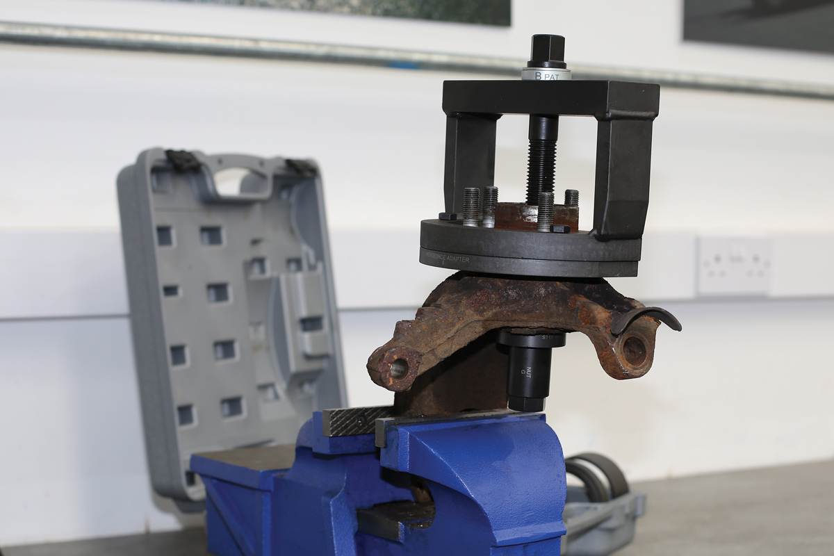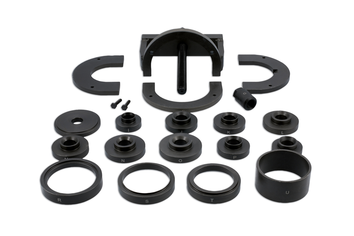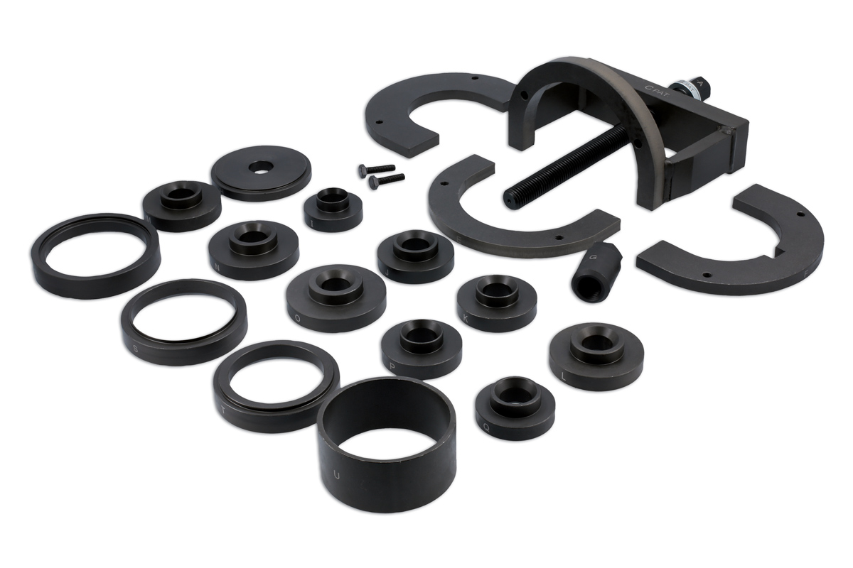 Conçu pour la dépose et l'installation du flasque d'entraînement et du roulement de roue sur les véhicules à traction avant et arrière équipés d'un roulement monobloc. À utiliser uniquement sur les essieux moteurs.