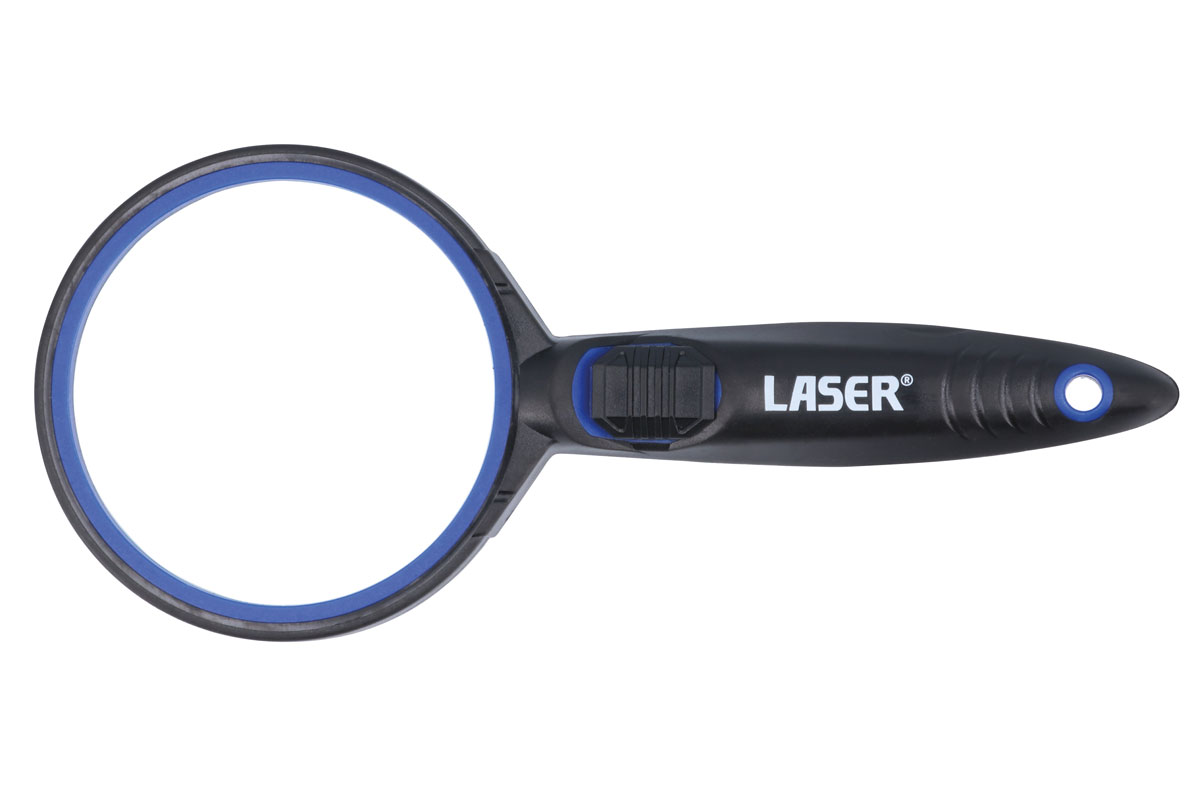 Loupe à main éclairante à LED, grossissement 3 x, dotée d'un large interrupteur facile à utiliser et d'une poignée ergonomique à prise confortable.