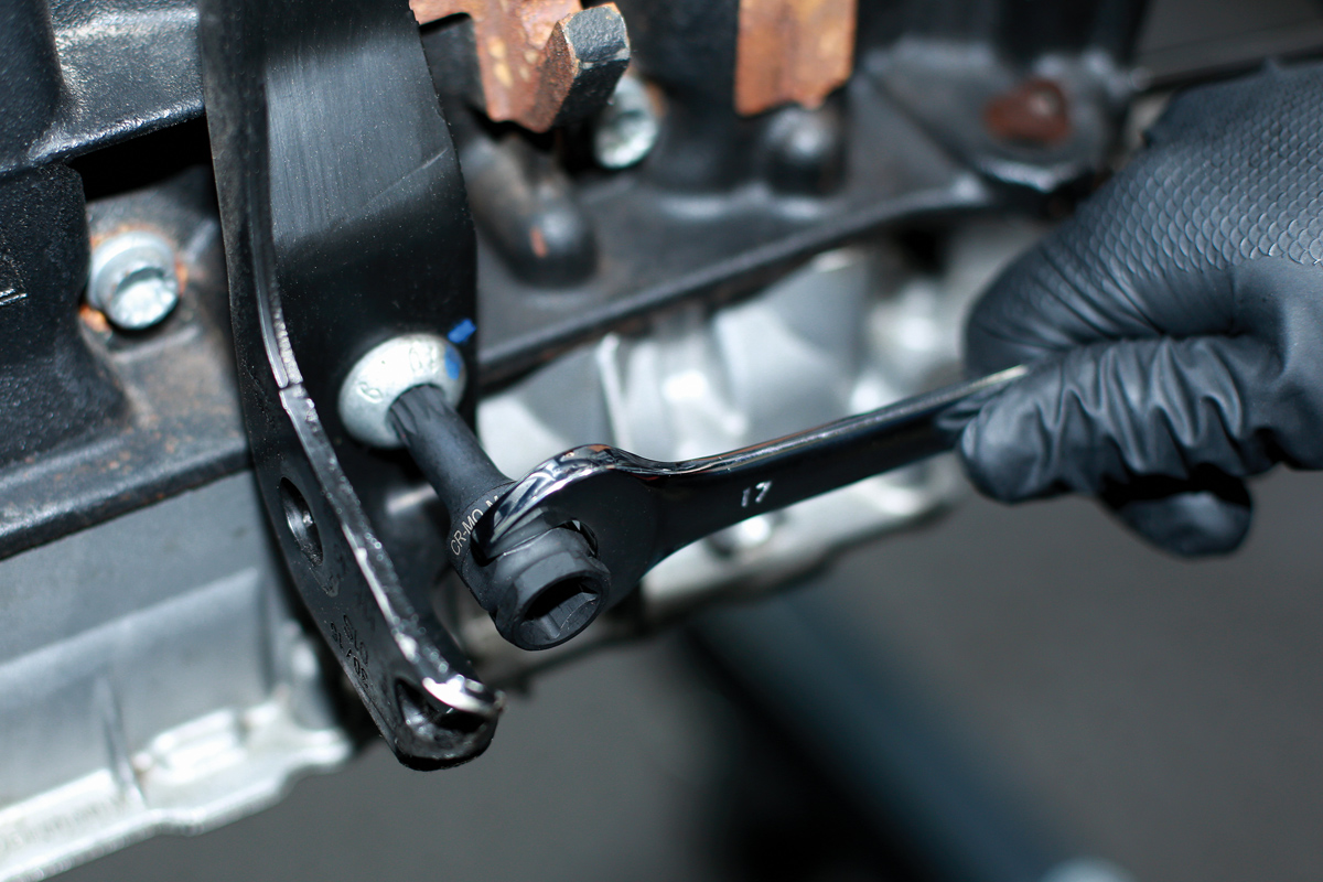 - Das 17-mm-Sechskantbit lässt sich in beengten Bereichen auch mit einem 17-mm-Ring- oder Ratschenschlüssel verwenden.