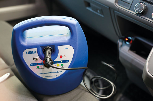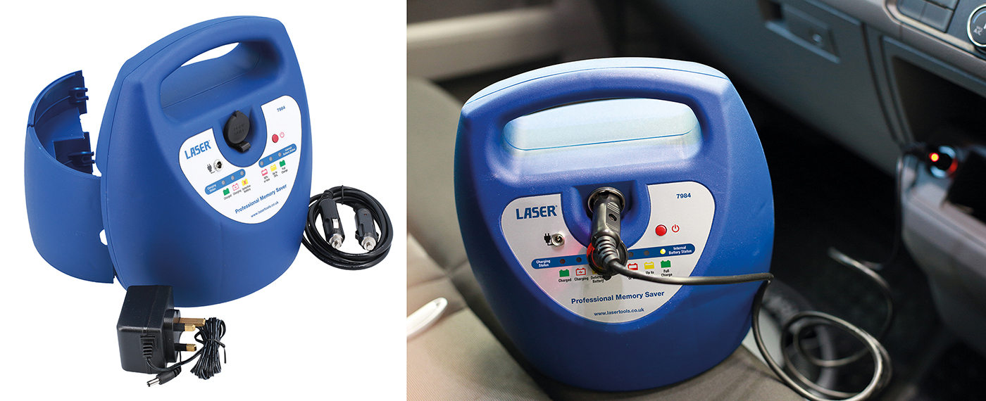 Compact memory saver unit designed to maintain the memory of the on-board computer to prevent loss of data or codes when the car battery is disconnected, helping to eliminate the requirement for reprogramming.