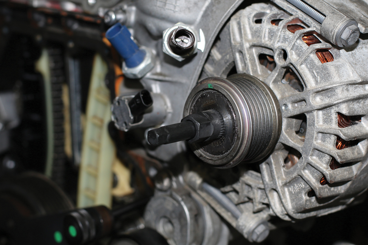 - Pour la dépose de l'embrayage à roue libre d'alternateur.