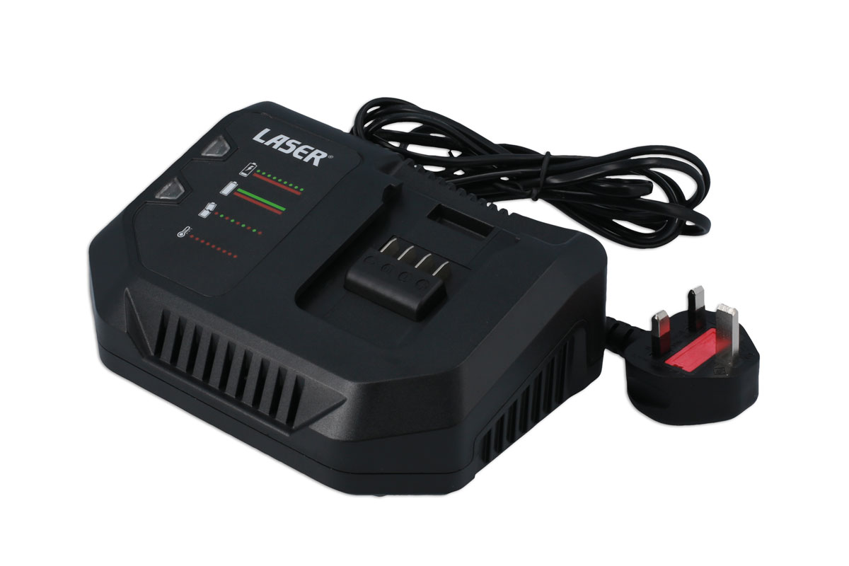 - CE, UKCA & RoHS compliant. 4.0Ah 20V battery available, Part No. 8007. Euro plug charger available - please see Laser Part No. 8009.