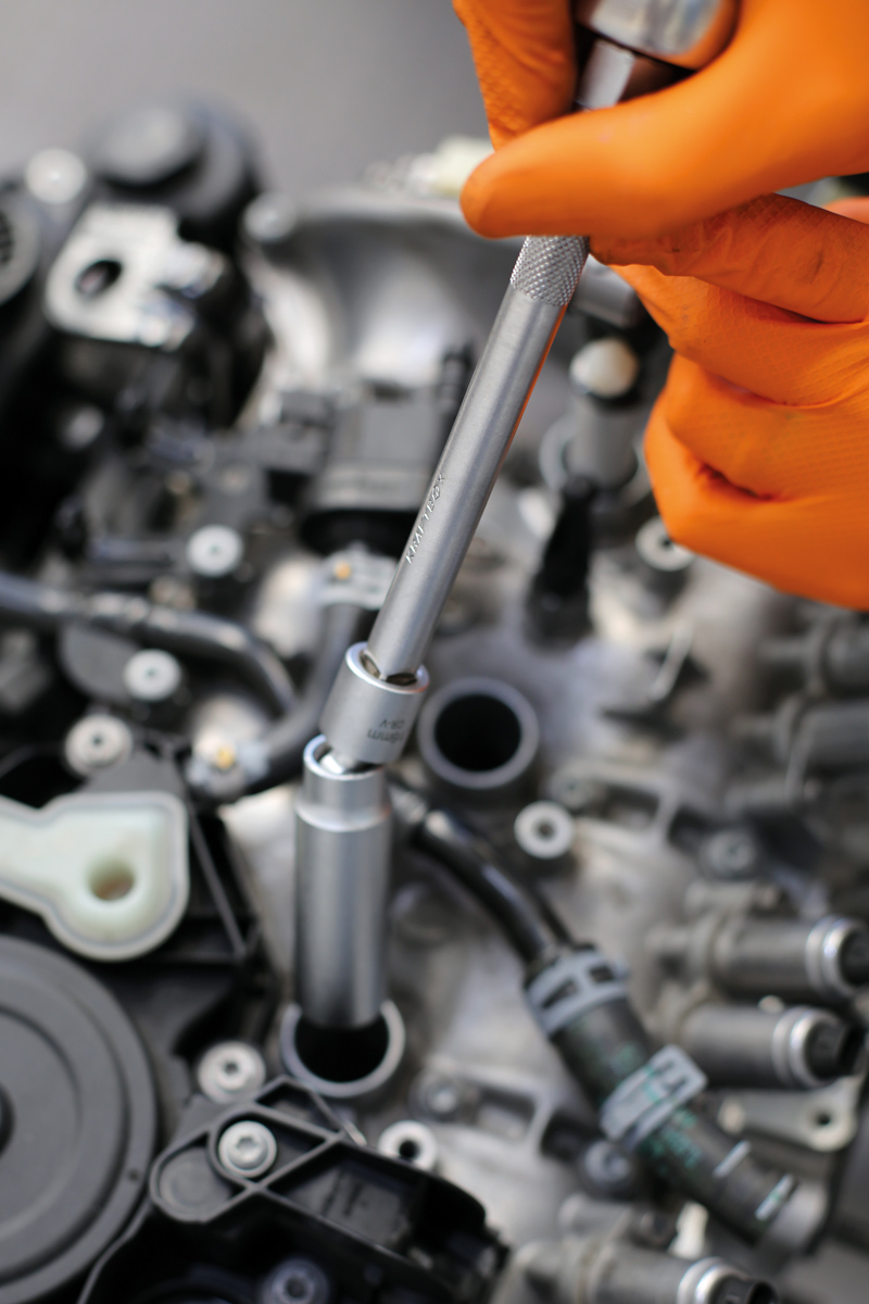• Spezielles Kugelgelenk und lange, schmale Form für den problemlosen Ein- und Ausbau von tief sitzenden Zünd- und Glühkerzen.