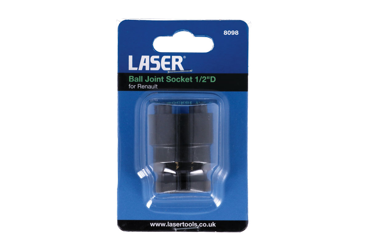 A 1/2"D ball joint socket for the removal and fitting of screw-in type front lower ball joints on Renault Twingo. To assist in removal Laser Tools suggest the lower arm eyelet be warmed with a flameless heat gun.
