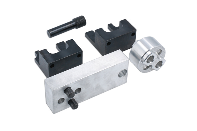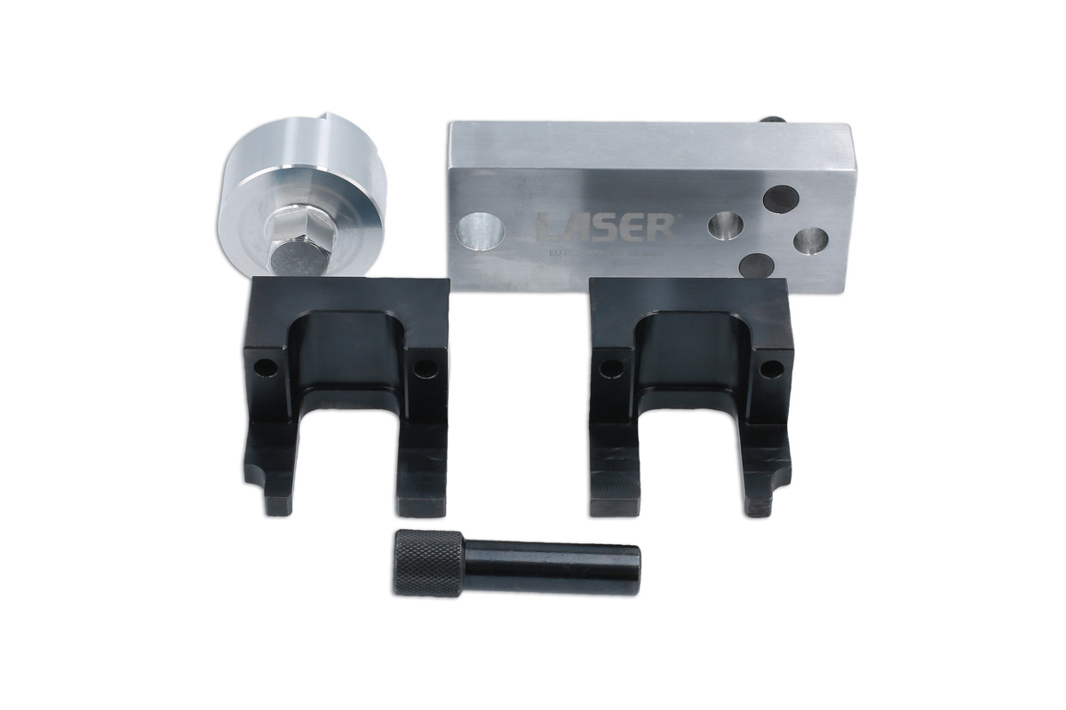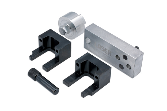 The Mercedes-Benz OM654 1.6L and 2.0L diesel engines use a timing chain that is mounted at the back of the engine which means any task involving its removal will require the engine to be removed. Once the engine is removed the Laser 8101 allows the user to lock the camshafts and crankshaft in their timed position for chain replacement. Note: The Laser 8101 can also be used to lock the camshaft and crankshaft with the engine in the vehicle when checking the timing.