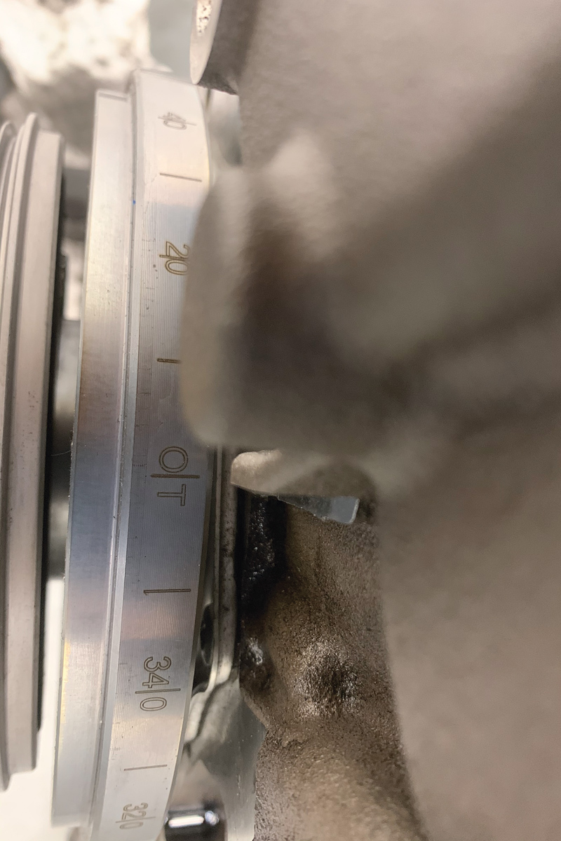 - Wanneer de tandwielen van de nokkenas weer worden gemonteerd, adviseert Laser het gebruik van splitversnelling-uitlijningsgereedschap (art.nr. 7067) om het tandwiel van de uitlaatnokkenas van de splitversnelling uit te lijnen. Opmerking: Als er geen geschikte kettingsplitter beschikbaar is, moet de motor worden verwijderd om de ketting te vervangen.