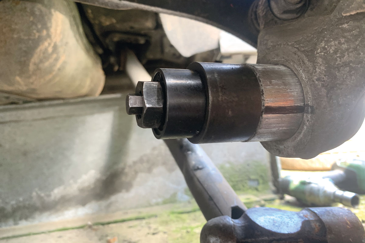 • Verwijderen en aanbrengen van de onderste bus van de achternaaf.