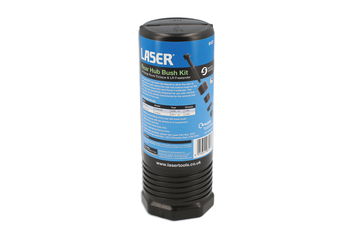 Das Werkzeug Laser 8127 wurde zum sicheren Ausbau und Auswechseln des Gummilagers des Hinterachsträgers beim Range Rover Evoque und Land Rover Freelander entwickelt. Das Werkzeug Laser 8127 wurde speziell konzipiert, um zum Ausbau und Auswechseln des Gummilagers möglichst wenige andere Fahrzeugkomponenten demontieren zu müssen.