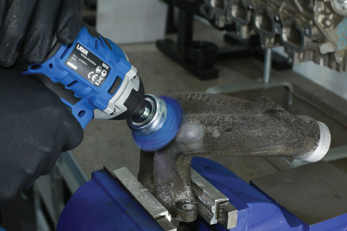 - Durch die Nylon-Schleifkornbürsten wird eine Funkenbildung vermieden, sie rosten nicht und sind sicherer in der Handhabung als herkömmliche Drahtbürsten.