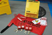 - 6 Vorhängeschlösser mit nicht leitendem Nylongehäuse und 76-mm-Bügel (mit 2 codierten Schlüsseln) zum Sichern gegen Wiedereinschalten oder unbeabsichtigten Zugriff auf Hochvoltsysteme.