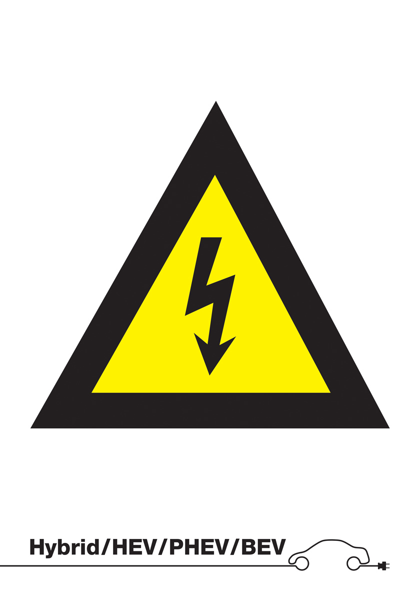 - 76mm long shackle, non conductive nylon bodied lockout padlock (with two coded keys), for preventing accidental activation of, or access to high voltage systems. A pack of 12 reusable, self adhesive high voltage labels (150 x 75mm) for indicating high voltage parts of the vehicle. High voltage sign (2pc) to inform employees/customers of high voltage risk.