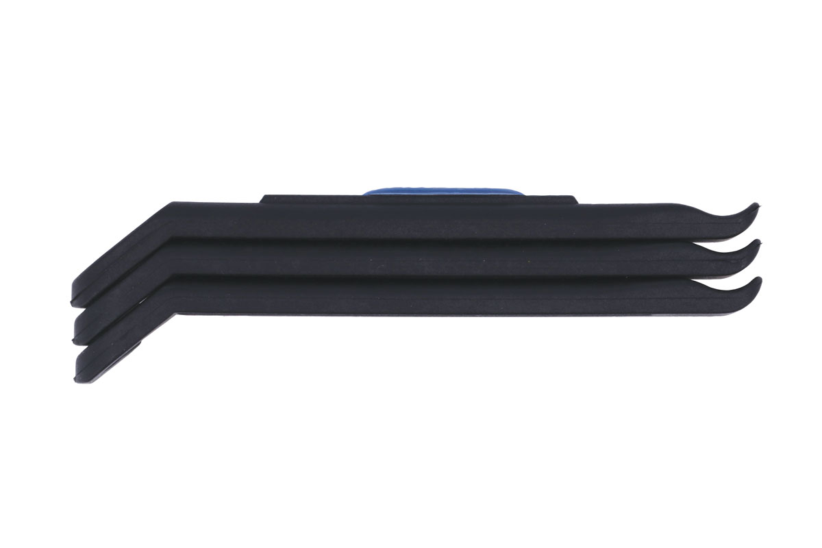 Set of 3 compact tyre levers, ideal for road and trail side repairs, as well as general workshop use. The narrow profile makes them easy to slide in and hook underneath the tyre. The spoke hook end allows the levers to hold themselves in place when more than one is required.