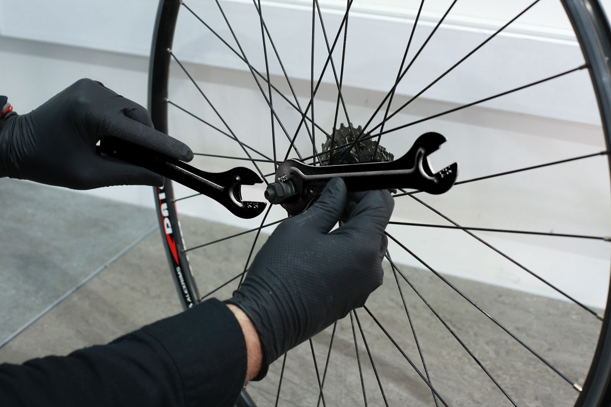 - Da die beiden Schlüssel identisch sind, können Arbeiten auf beiden Seiten der Radnabe vorgenommen werden.