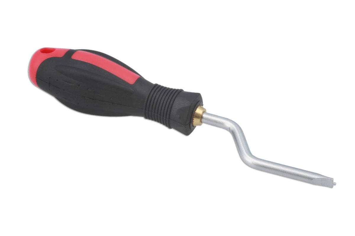 Recommended for use when lacing a bicycle wheel, this spoke nipple driver allows for nipples to be fitted and tightened through the rim at speed due to its clever cranked design. The head of the driver features a tab to fit into the spoke hole helping to hold the nipple in place whilst it is being offered up to the hole in the rim. Intended to be used to initially tighten the nipple until all the spokes are fitted and are starting to tension, at which point a spoke key such as Laser part number 8188, can be used.