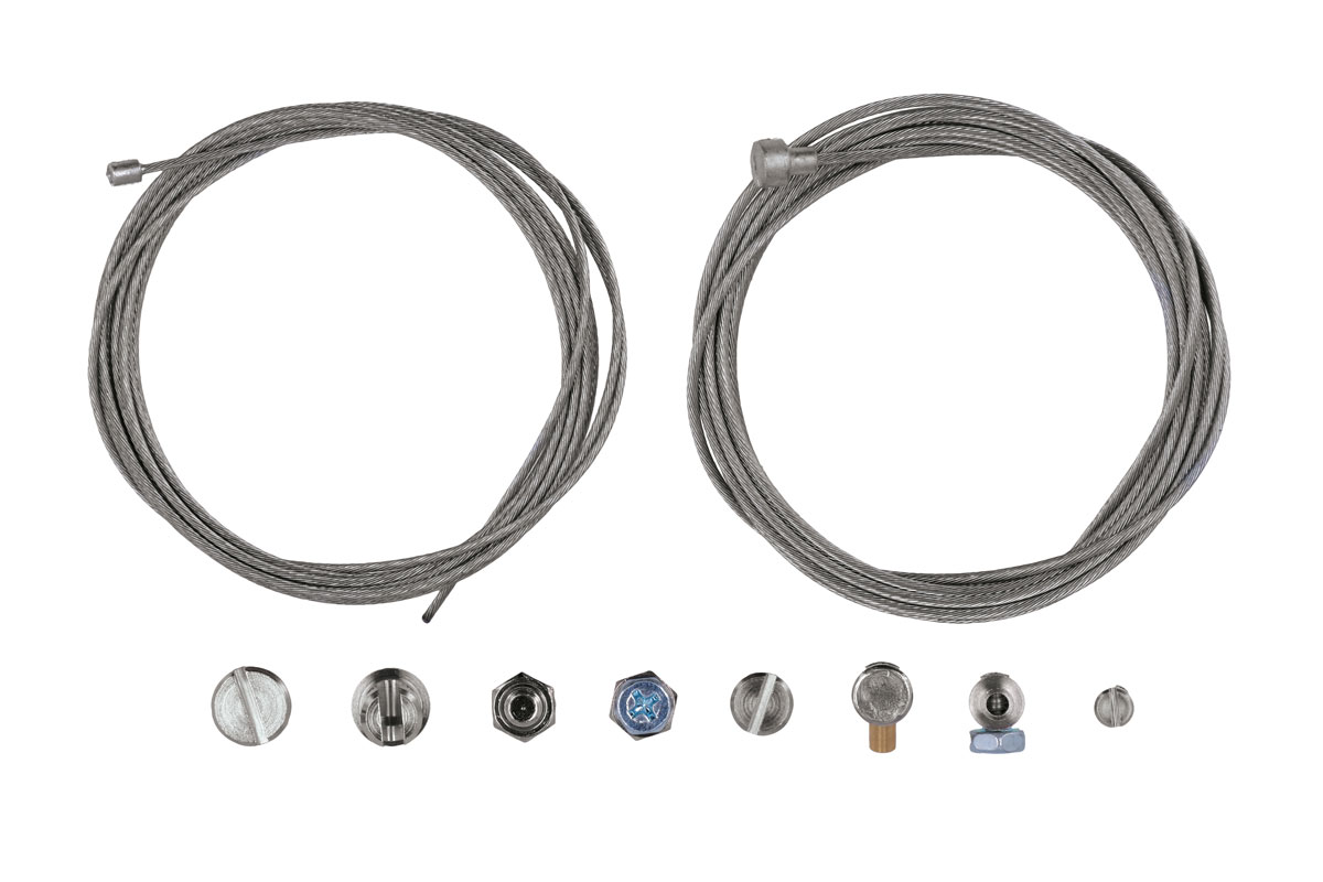 Kompaktes Set für eine Notfallreparatur unterwegs, um einen gerissenen Seilzug auszuwechseln – selbst meilenweit von zu Hause entfernt. Das Set beinhaltet zwei Seilzüge mit unterschiedlichen Durchmessern, die sich als Bremszug oder Schaltzug verwenden lassen, sowie verschiedene Endhülsen für eine vorübergehende Reparatur, um mit dem Rad nach Hause zu gelangen.