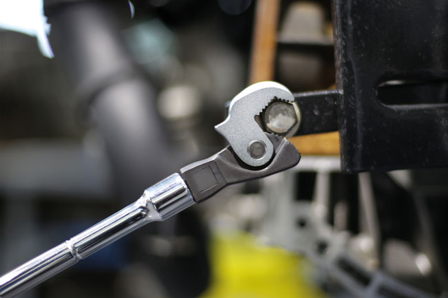 - Tête de clé à réglage rapide avec mâchoires dentées pour une prise ferme, même sur les fixations les plus arrondies.