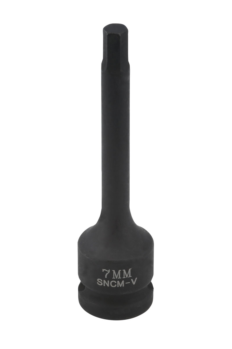 100 mm langer, für Schlagschrauber geeigneter 7-mm-Innensechskant-Bit, geeignet für den Einsatz an Bremssätteln, wenn ein Sechskant-Bit in Standardlänge aufgrund der Platzverhältnisse nicht eingesetzt werden kann.