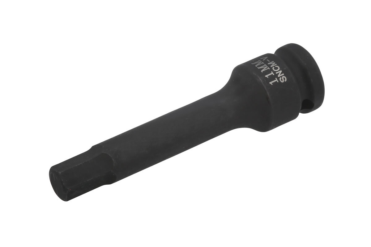 100mm long impact quality 11mm hex socket bit, suitable for use on brake calipers when a standard length hex bit will not fit due to limited access.