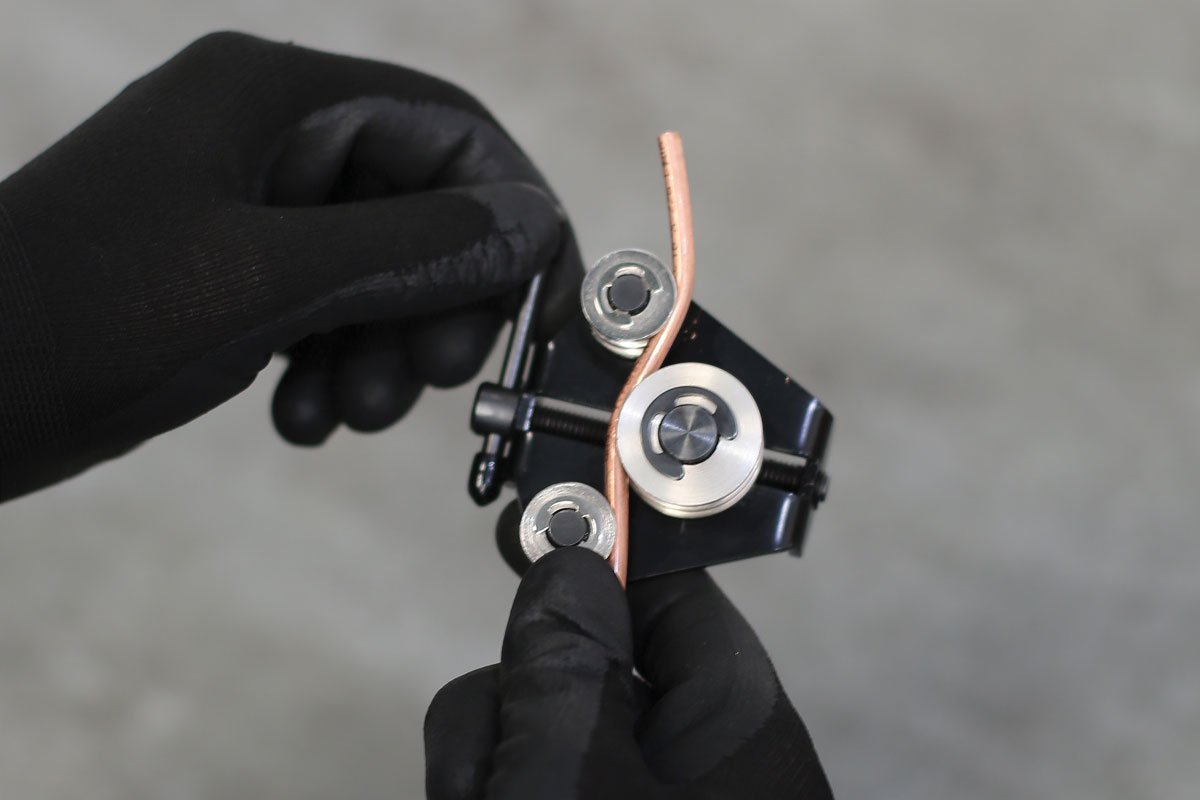 Een speciale buigmachine voor autobuizen, ontworpen voor remleidingen, met een drievoudige rolconstructie en een T-stang handvat voor gecontroleerd buigen zonder het risico te lopen dat de buis beschadigd wordt. Het compacte, lage ontwerp maakt het ideaal voor gebruik in voertuigen. Een eenvoudig gereedschap voor het snel buigen van buizen met een kleine diameter tot 6,35 mm in een reeks materialen, waaronder koper en cupro-nikkel.