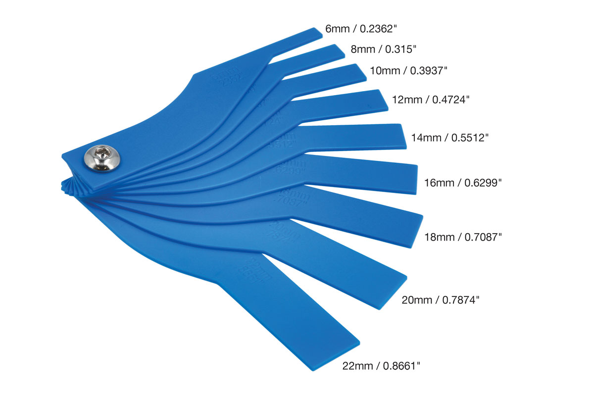 • 9 blades conveniently marked in both metric & imperial units. Range: 6 - 22mm (0.2362" - 0.8661").