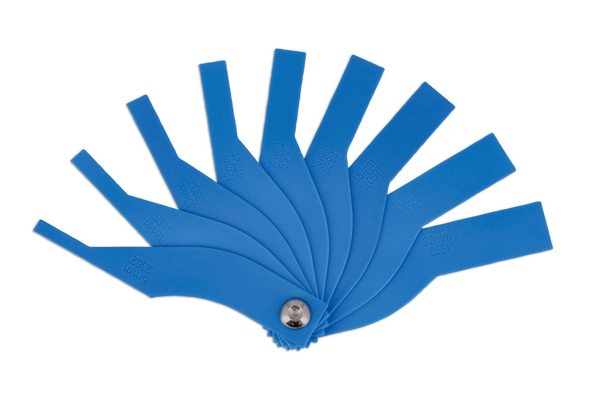 A 9 blade brake wear gauge suitable for use on HGVs to check the measurement of (or demonstrate) the thickness of the remaining brake pad material. The offset design allows for the blades to be inserted between the brake disc and the brake pad backing plate allowing the pad thickness can be measured without needing to be removed from the vehicle. Many OEM brake manufacturers for HGV’s recommend pad replacement at around 5mm. The 8258 has been designed to allow a definitive report on remaining pad thickness to be made so recommendation can be made to the vehicle owner.