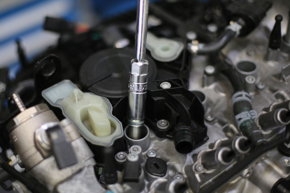 - Mit Gummieinsätzen zum Schutz und sicheren Greifen der Zündkerze.