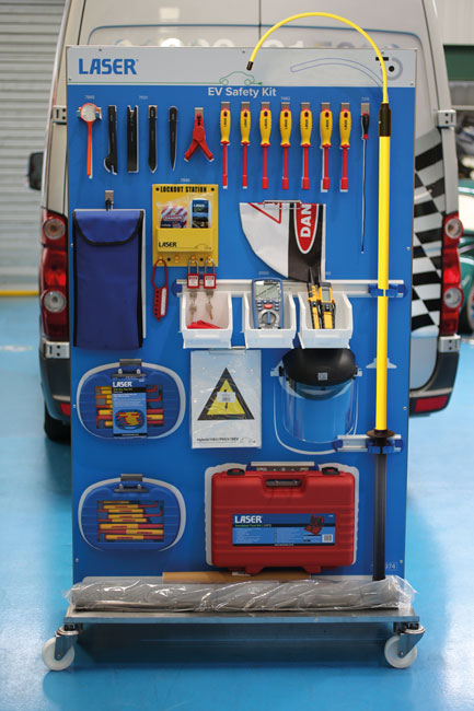 A complete package of tools, PPE & safety products for workshop use, when servicing or repairing high voltage vehicles. Supplied on a mobile shadow board for ease of access & security.