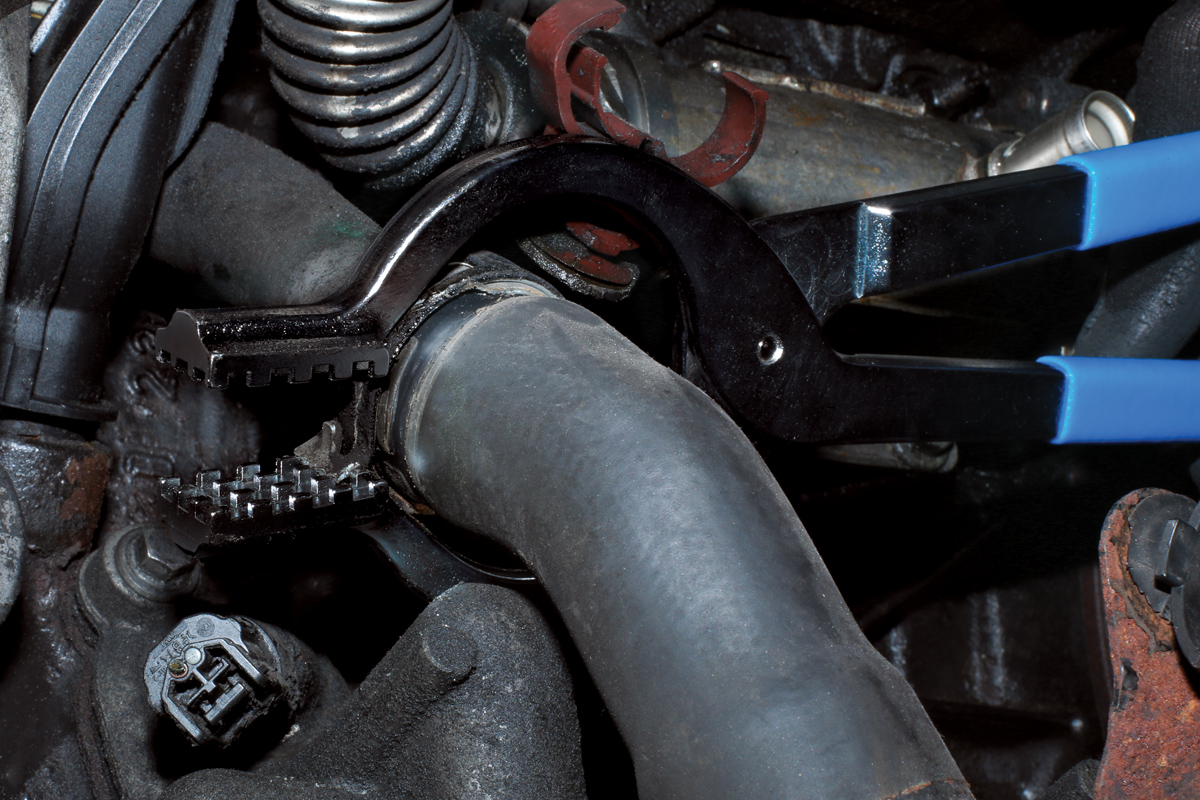 • The special design allows the mechanic to easily rotate and remove the hose clamp.