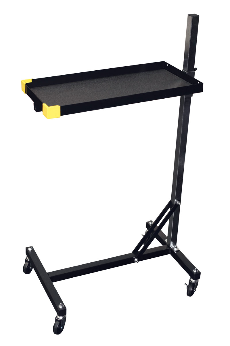 Keep tools and parts close to hand and easily accessible with this mobile service trolley, perfectly designed to be positioned over a vehicle engine bay, in a vehicle via the doors or over the car boot. The simple design allows the tray to be move up and down a single support, with height adjustment from 515mm up to 1300mm, ensuring the tray can be positioned at the required height for any tools, components or spares to be kept as close as possible to wherever they are needed.
