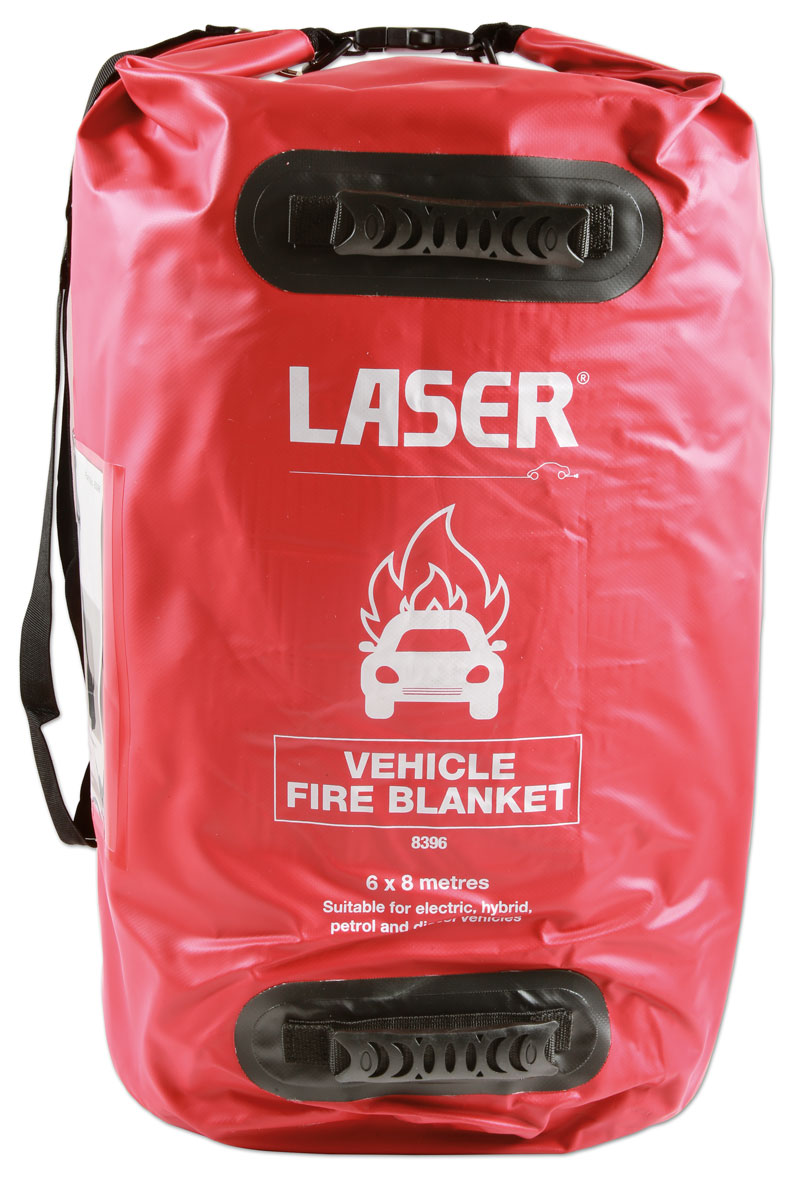The Laser 8396 fire blanket has been introduced to help reduce and control the risk of a vehicle fire spreading to other nearby structures and vehicles by starving the fire of oxygen and thereby keeping the temperatures under control. It should be noted that EV battery fires are self-oxygenating so a fire blanket can only help control the fire, it may not fully extinguish it. The 8396, once deployed, should not be removed until trained fire fighting personnel have fully assessed the situation.