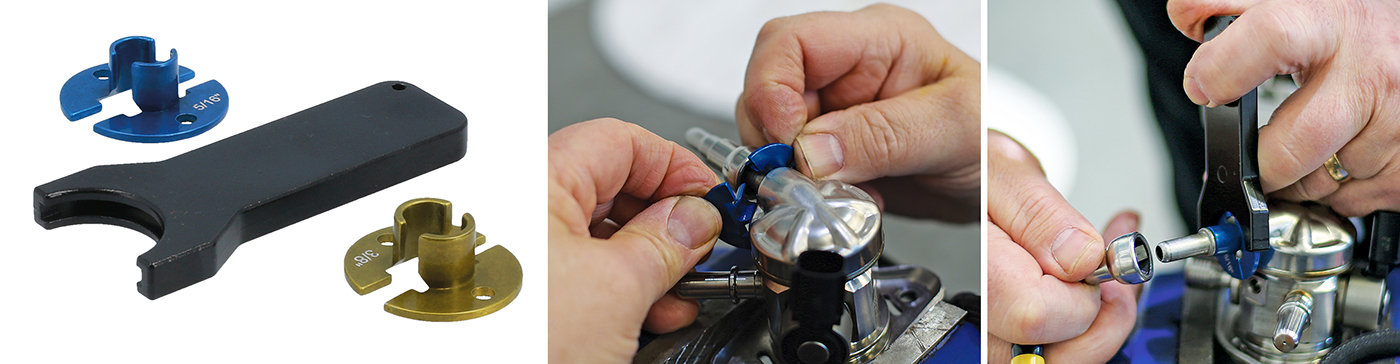 Ontworpen om de brandstofleidingen af te koppelen op Ford-voertuigen waar metalen drukconnectoren in gebruik zijn. Te gebruiken conform de OE-instructies op diversen modellen Ford. Ook voor Vauxhall-brandstofsystemen. Op deze drukconnectoren van brandstofleidingen hebben zit geen knop, om ze open te maken moet een klemring in de connector geschoven worden.
