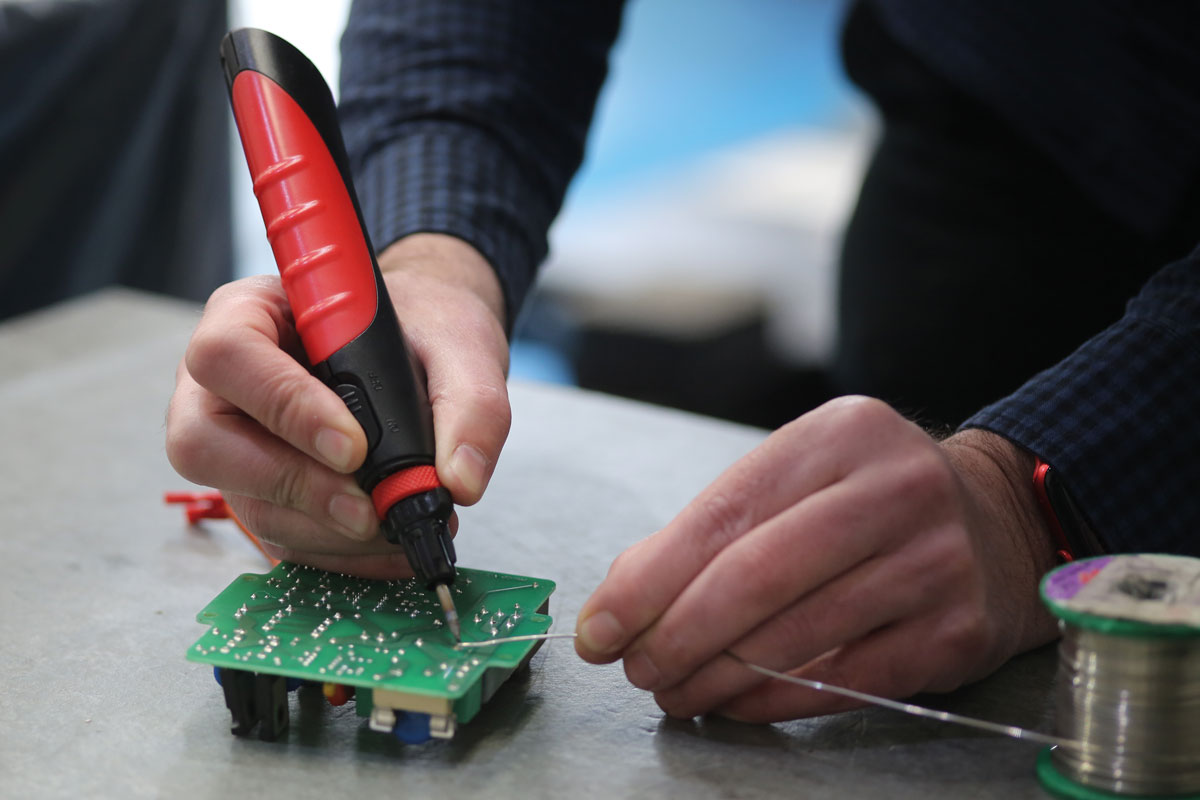 - Fer à souder de 15 W alimenté par piles.