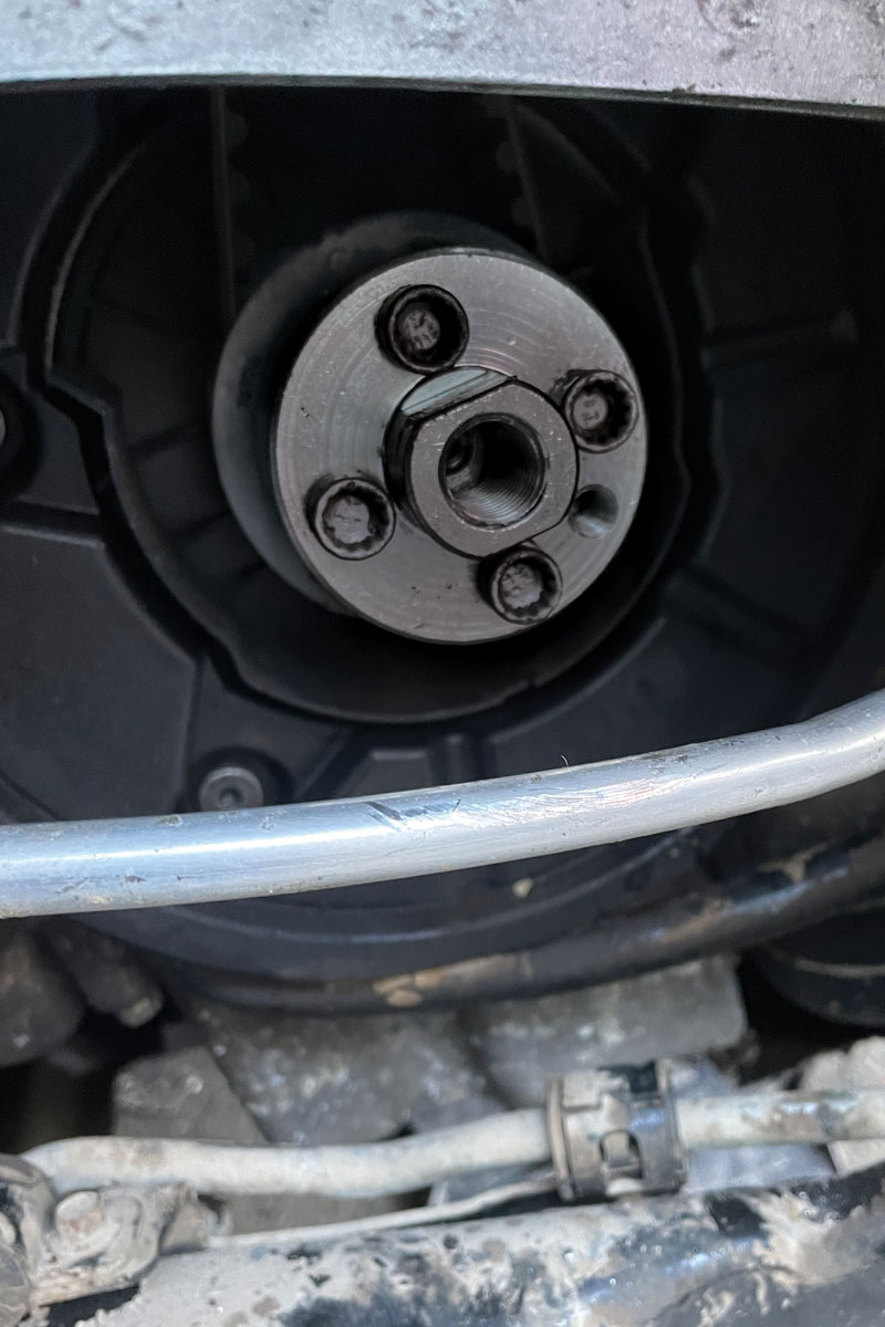 Der Kurbelwellenrad-Abzieher Laser 8410 wurde speziell dafür entwickelt, die Kurbelwellenriemenscheibe beschädigungsfrei von der Kurbelwelle zu entfernen, um Zugang zum vorderen Kurbelwellendichtring zu erhalten und eine weitere Demontage des Motors zu ermöglichen.
