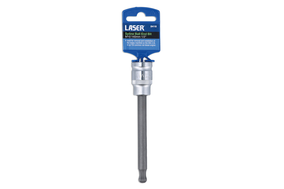 - 1/2"D ball ended Spline socket bit: M10; overall length: 140mm; bit length: 100mm.