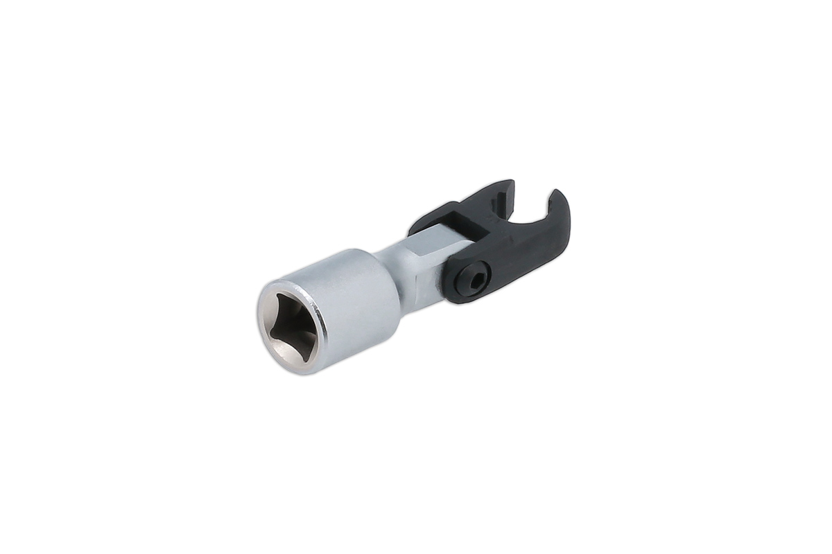 Flexibler 10-mm-Hahnenfußschlüssel zur Verwendung mit einer Ratsche mit 3/8"-Antrieb. Durch den flexiblen Kopf ist er ideal für den Einsatz an schwer zugänglichen Stellen. Das offene Ende ermöglicht die Verwendung an Überwurfmuttern oder Sensoren.