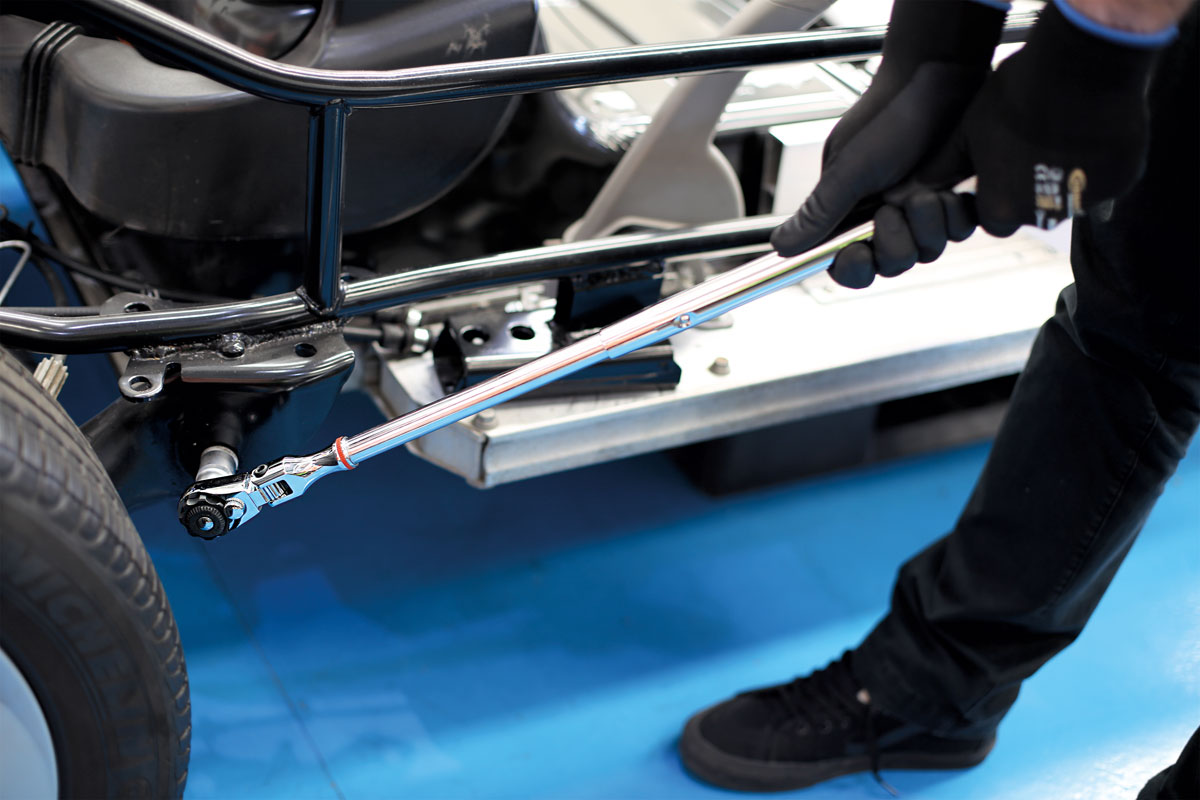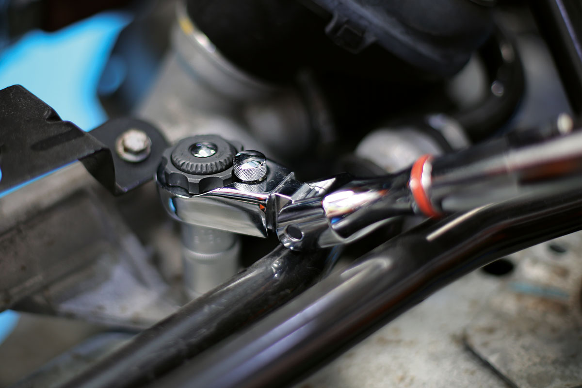 - Flexible ratchet head that features a ratchet lock button allowing more torque to be applied when being used as a power bar. Max torque: 610Nm.