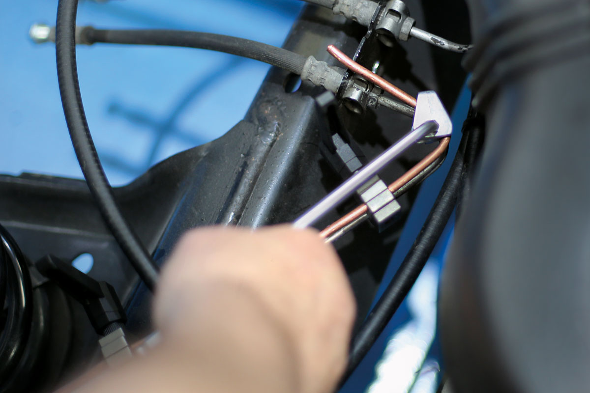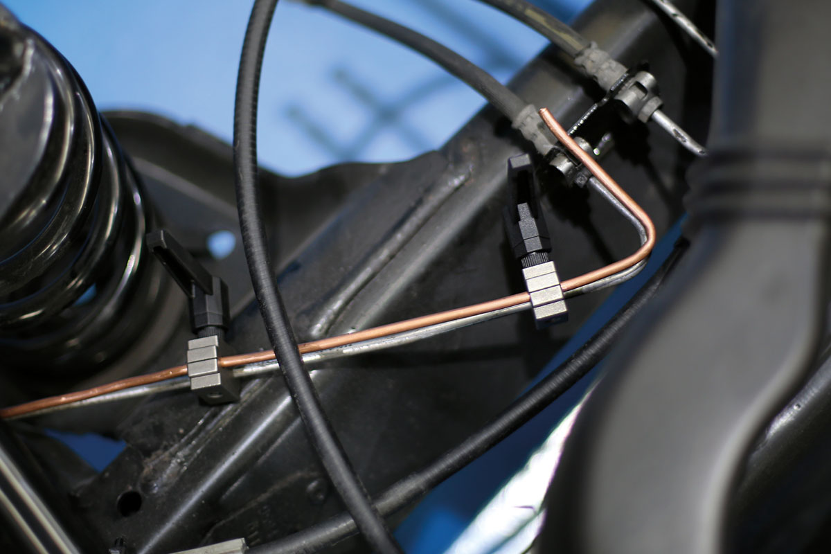- Mit 2 Paar Bremsleitungsschellen, die das Formen und Verarbeiten der Bremsleitung einfacher machen.