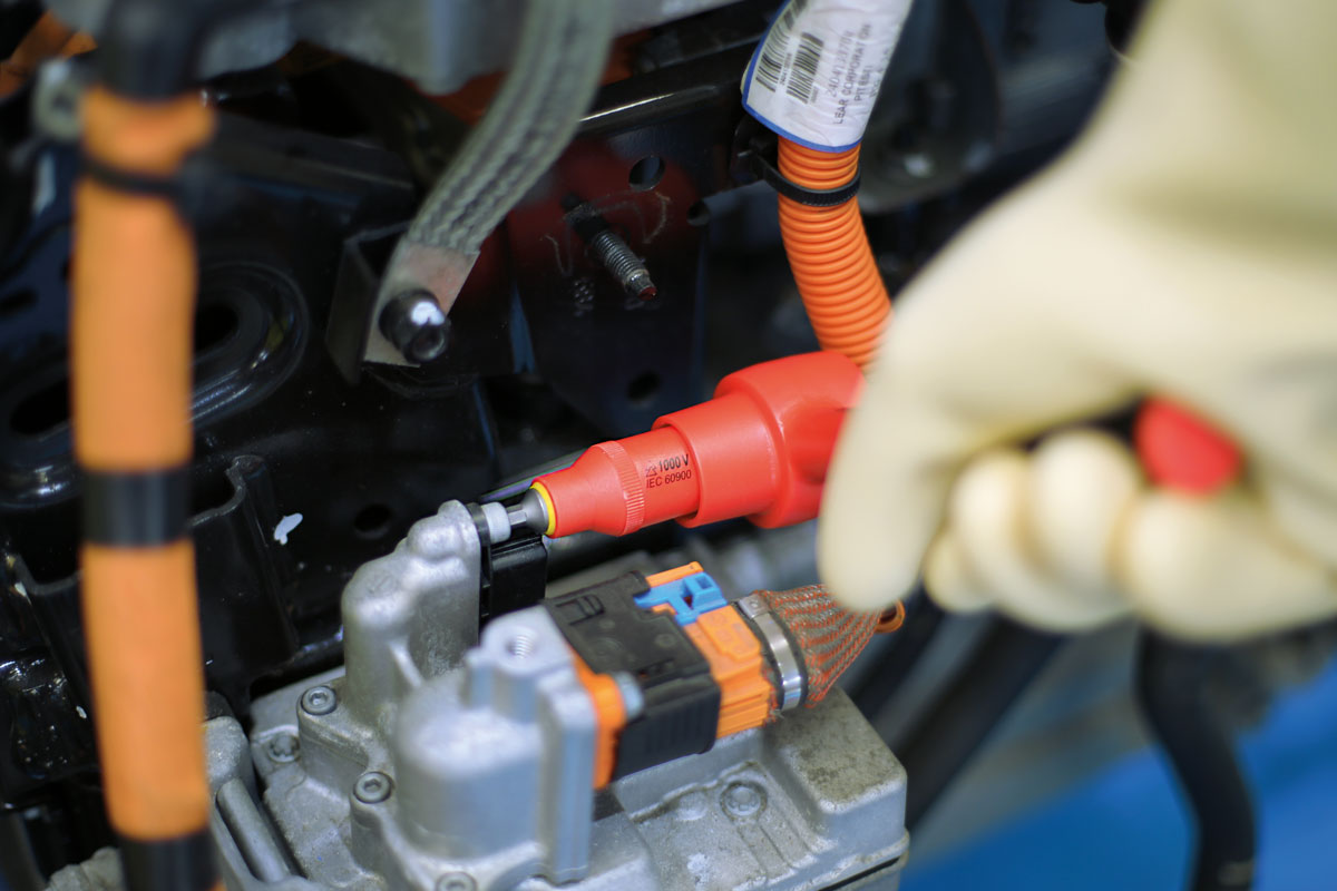 A fully insulated set of 3/8"D hex bit sockets, VDE certified for safe operator use on live circuits up to 1000v AC and 1500v DC. Suitable for use by technicians and mechanics working on hybrid and electric vehicles, together with professional electricians and installers.