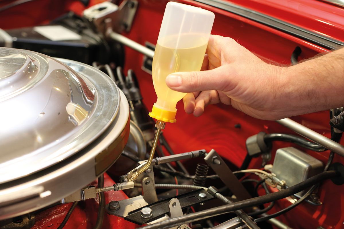 A soft plastic oiler with an angled nozzle that can be adjusted to reach hard to access lubrication points or so that it can be used when inverted. The nozzle end cap can also be adjusted to alter the speed of the fluid being dispensed as well enabling it to be closed to prevent it leaking when it’s not in use.
