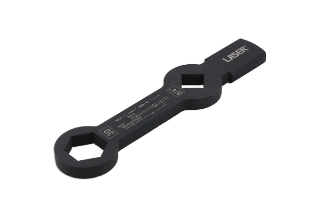 3/4"D brake caliper wrench for releasing and refitting brake caliper mounting bolts on commercial vehicles. These caliper mounting bolts are tightened to very high torque figures, this slogging wrench, designed with a 3/4" drive and two impact striking faces, is designed to get the bolts loose.