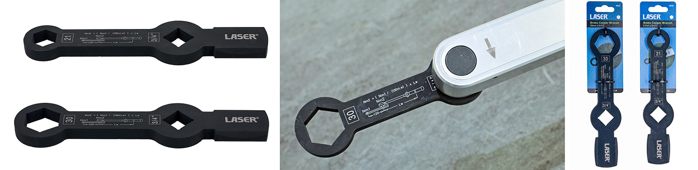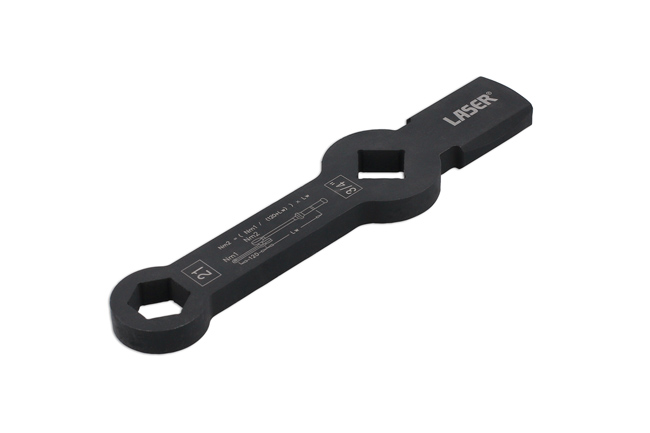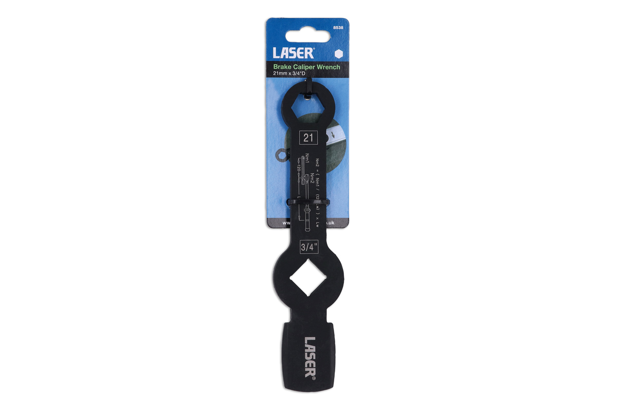 3/4"D brake caliper wrench for releasing and refitting brake caliper mounting bolts on commercial vehicles. These caliper mounting bolts are tightened to very high torque figures, this slogging wrench, designed with a 3/4" drive and two impact striking faces, is designed to get the bolts loose.