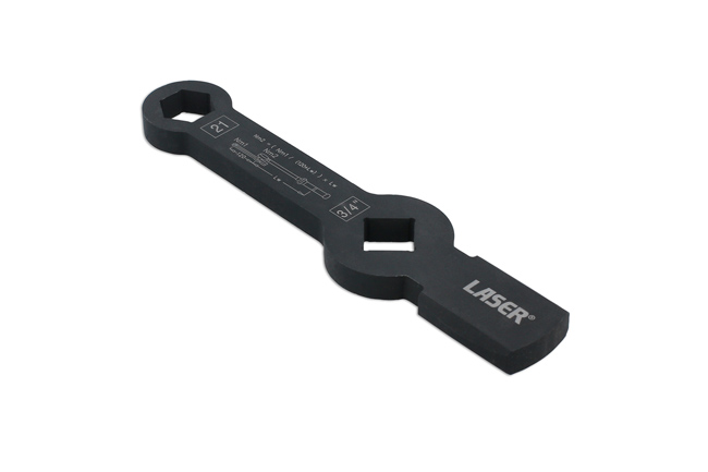 Bremssattelschlüssel mit 3/4"-Antrieb zum Lösen und Wiedereinbau von Bremssattel-Befestigungsschrauben an Nutzfahrzeugen. Diese Bremssattel-Befestigungsschrauben werden mit sehr hohen Drehmomenten angezogen. Dieser Schraubenschlüssel mit 3/4"-Antrieb und zwei Schlagflächen ist so konzipiert, dass er die Schrauben lösen kann.