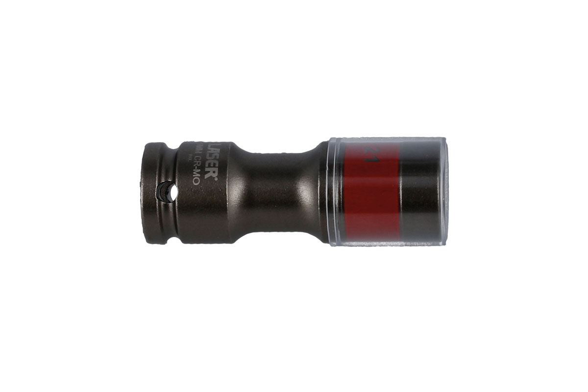 Douille à impact de 21 mm conçues pour le retrait en toute sécurité des écrous de jantes. La douille est dotée d'un manchon interne et d'un manchon en plastique pour éviter d'endommager la roue ou les écrous de roue. La conception à torsion offre une résistance et une durabilité accrues tout en réduisant le poids.