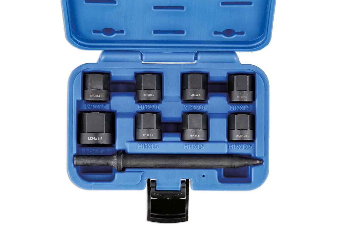 Ontwikkeld om het scheiden van kogelgewrichten gemakkelijk te maken. De slagmoeren zijn ontwikkeld om op de plek van de gewrichtsmoer te worden geschroefd tot aan de draad van het gewricht. Hierdoor kan een pneumatische hamer met de bijgeleverde tapse pons worden gebruikt om de gewrichtsspie snel los te trillen. De set bevat slagmoeren in twee maten voor grotere aandrijfasdraden, waardoor hetzelfde proces kan worden gebruikt om vastzittende dwarsgegroefde aandrijfassen uit de naaf te drukken.
